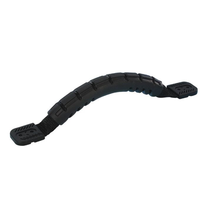··· Riemengriff aus schwarzem Gewebe mit Gummiüberzug.