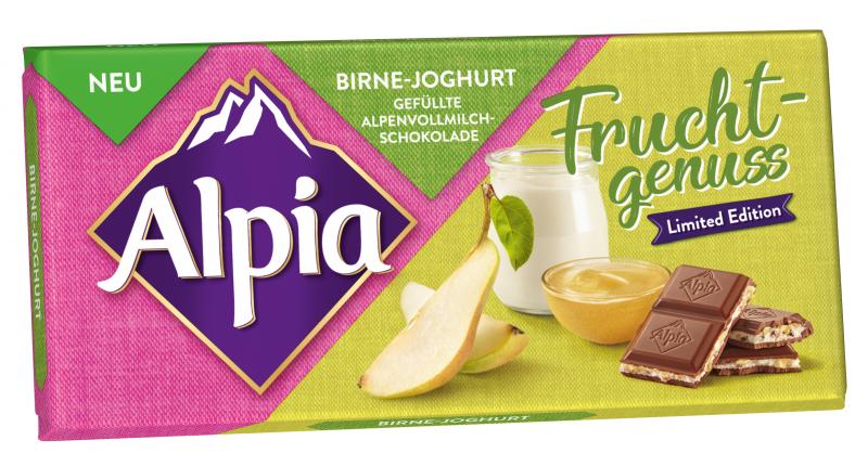 Gefüllte Alpenvollmilch-Schokolade Birne-Joghurt.