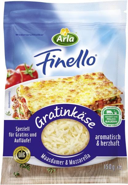 20: Mit Arla Finello Gratinkäse laufen Ihre Ofengerichte zu Höchstform auf! Die aromatisch-herzhafte Käsekomposition rundet jedes überbackene Gericht perfekt ab. Der Käse schmilzt leicht, verläuft gleichmäßig und gibt Ihren Gratins und Aufläufen eine delikate, goldene Bräunung. Ein aromatisch herzhafter Mix aus Mozzarella und Emmentaler. Speziell für Gratins und Aufläufe!