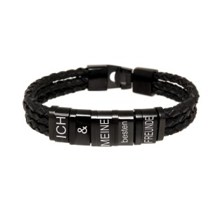 7: Armband aus Leder braun oder schwarz, mit 5 Elementen aus Edelstahl mit individueller Gravur