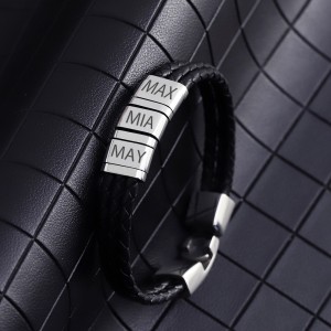 7: Armband aus Leder schwarz, mit 3 Elementn aus Edelstahl mit individueller Gravur