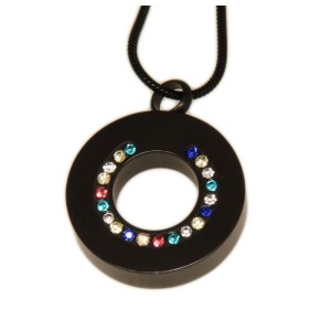 7: Asche Anhänger Kreis aus Edelstahl schwarz Hochglanz poliert mit bunten Zirkonia Steinen