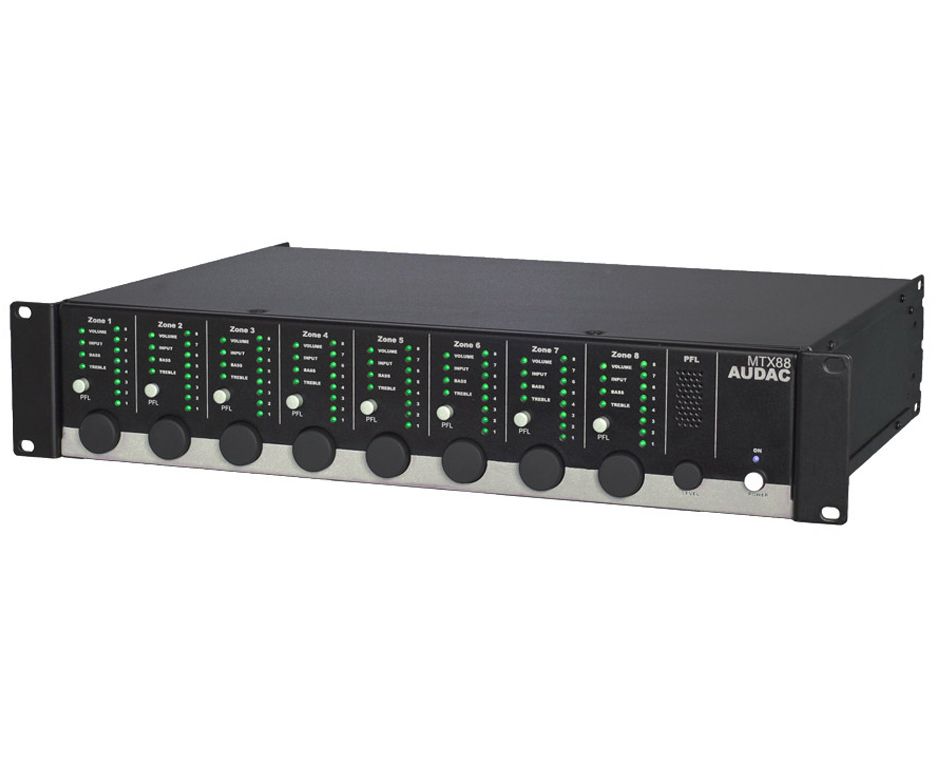 für 1069.00€ kaufen ··· 190379 ··· 102435418 ··· 8-Zonen Multizonen Audio Matrix Hersteller: Marke: Audac EAN: 5414795028906 Kat: PA-Equipment > Mischpulte > Installationsmischer Lieferzeit: 4 - 10 Tage Versandkosten: 0,00 Icon: https://musicandmorestore.de/out/pictures/generated/product/1/87_87_75/190379-1.jpg Bild: https://musicandmorestore.de/out/pictures/master/product/1/190379-1.jpg Audac MTX 88: Der 8-Zonen-Verstärker AUMTX88 aus der AUMTX Serie verfügt über zwei symmetrische Mikrofoneingänge mit Priority-Funktion, eine zuschaltbare Phantomspeisung sowie einen 3-Band-Equalizer. An den vier Stereo-Eingängen für Line-Pegel-Quell 14: 15: 1616542429 16: # 17: 0 18: ##### 19: https://musicandmorestore.de/out/pictures/master/product/1/190379-1.jpg 20: Audac MTX 88: Der 8-Zonen-Verstärker AUMTX88 aus der AUMTX Serie verfügt über zwei symmetrische Mikrofoneingänge mit Priority-Funktion, eine zuschaltbare Phantomspeisung sowie einen 3-Band-Equalizer. An den vier Stereo-Eingängen für Line-Pegel-Quell 21: Zonenmischer 22: # 23: Audac MTX 88 24: Audac MTX 88 25: