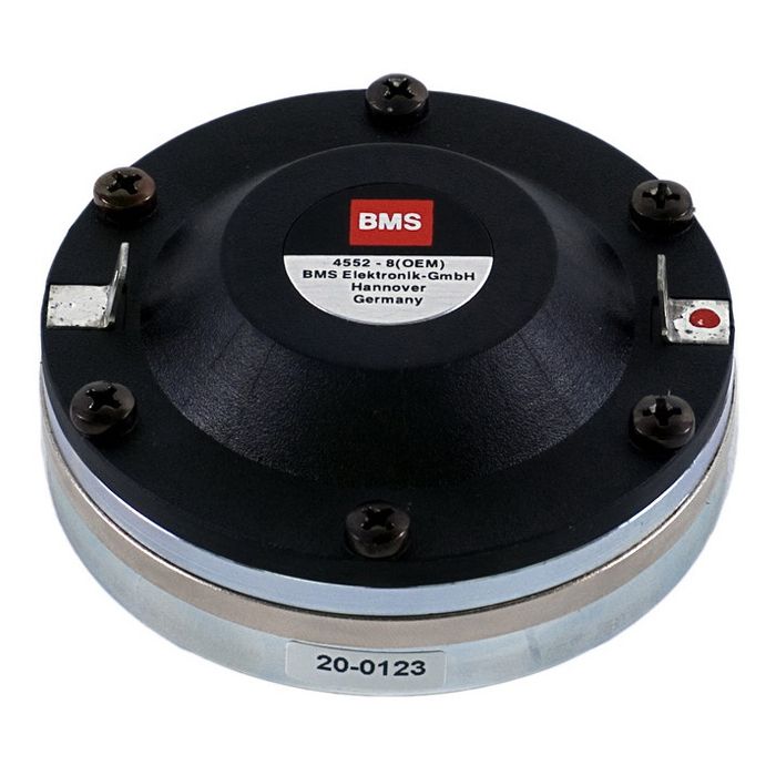 20: BMS 4552 NDL: Features:Unique Patented Design Neodymium Magnet Assembly 113 dB Sensitivity 1 W / 1 m 1 kHz Crossover Extended high Frequency Response up t 20 kHz Very small Size and low Weight 44.4 mm Sandwich in- and outside Voice Coil The BMS 4552ND is