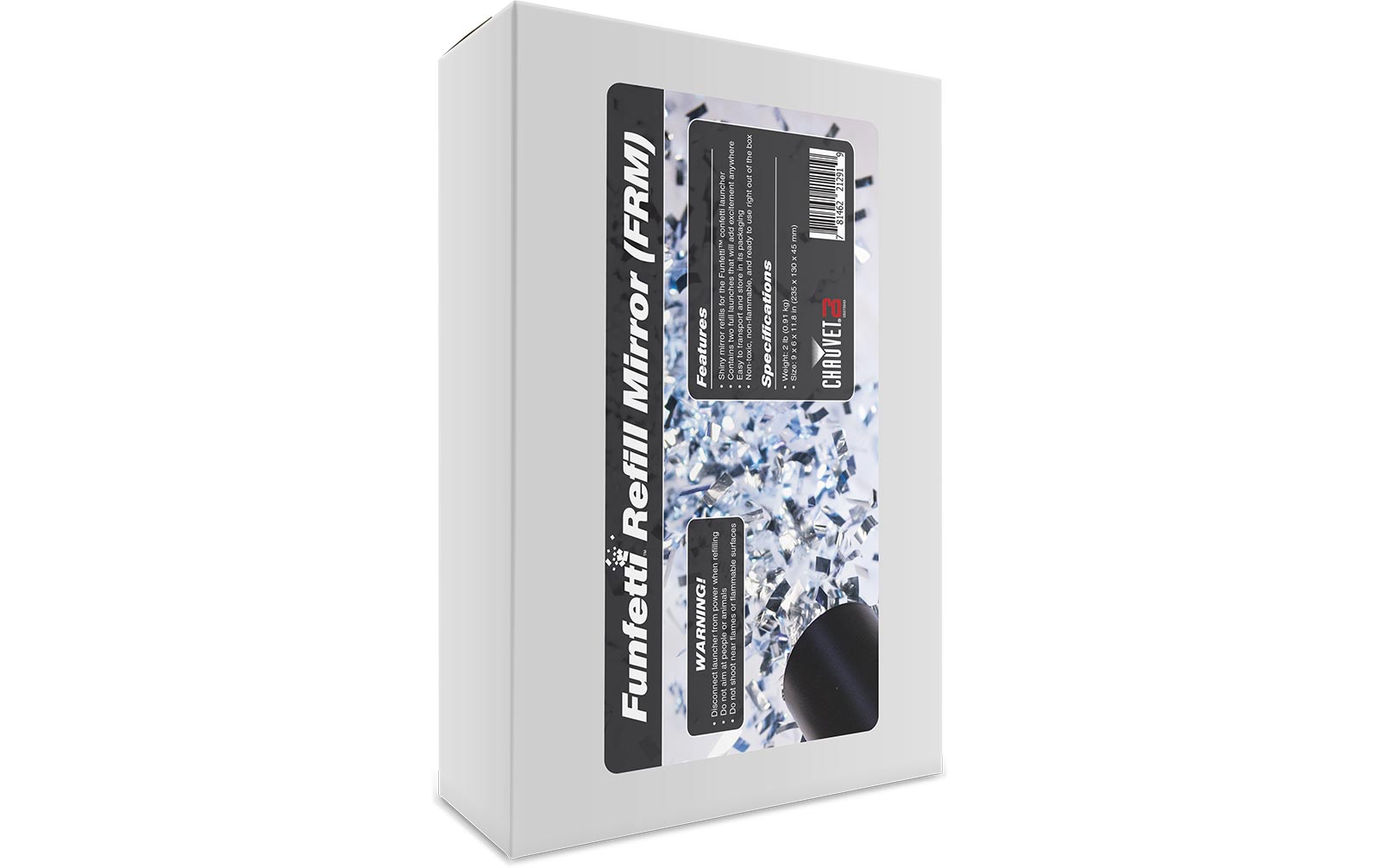 20: Chauvet DJ Funfetti FRM Nachfüllpack Konfetti Spiegel: Der Funfetti-Shot-Nachfüllpack - Spiegel von CHAUVET DJ ist ein Nachfüllpack mit glitzerndem Konfetti für die Konfettikanone Funfetti Shot. Zwei komplette Ladungen Konfetti, einfach zu transportie
