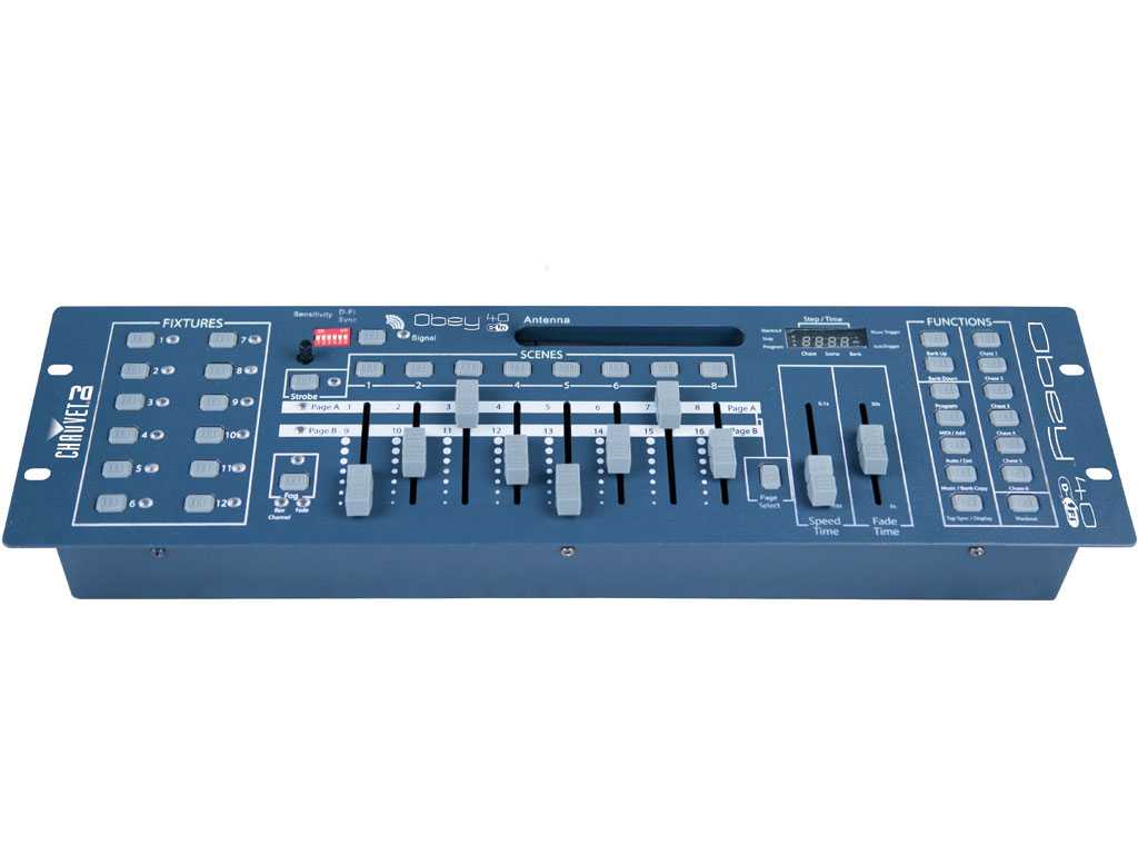 20: Chauvet DJ Obey 40 D-Fi 2.4 Wireless DMX Controller Demo-Ware: Features:Wireless DMX Signal wird per Built-In D-Fi™ 2.4GHz Übertrager gesendet Individuelle Bedienung von 12 verschiedenen Lampen möglich Anpassbare Lichtstimmungen mit einstellbaren Stro