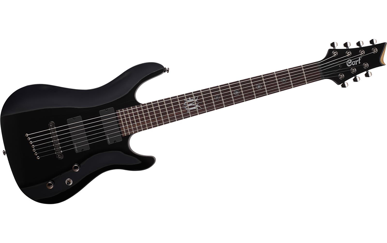 20: Cort EVL-K57B 7-Saiter Black: ModellEVL-K57BGebaut inIndonesienKorpusMahagoniDecke HalsAhornHalsbefestigunggeschraubtGriffbrettPalisander, 305 mm RadiusBünde24 / 2,9 mmMensur686 mm (Bariton)BindingohneHardwareNickel, schwarzMechanikenDruckgussStegTonePro