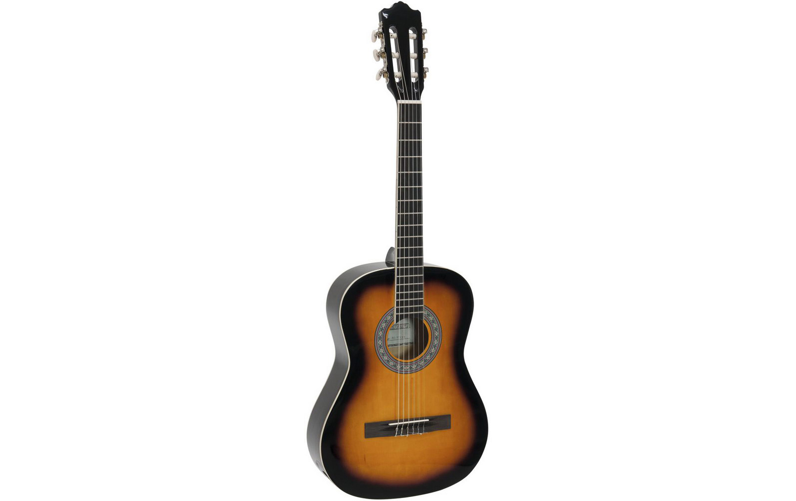 20: Dimavery AC-303 Klassik-Gitarre 3/4, sunburst: Features:Farbe: sunburstKorpus: AgathisHals: AhornGriffbrett: Schichtverleimtes HolzDecke: AgathisBrücke: AhornMensur: 580 mm Technische Daten:Versandgewicht: 2,15 kgInstrumente > Gitarren & Bässe > Kinderg