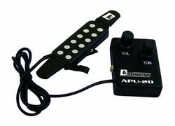 20: Dimavery APU-20 Tonabnehmer mit Regler: Features: Hohe WiedergabequalitätUmfassendes FrequenzspektrumFür alle 96,52 cm (38 Zoll ) -104,14 cm( 41 Zoll ) Gitarren mit Schalloch geeignetzum einklippsen ins SchallochKabellänge: 3m + 0,8m zwischen Tonabnehm
