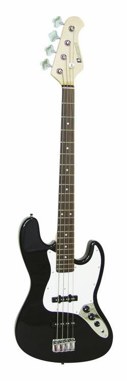 20: Dimavery JB-302 E-Bass, schwarz: Features: Konstruktion: geschraubter HalsKorpus: LindeHals: AhornGriffbrett: Palisander / 21 BündePickups: 2 x Single CoilsRegler: 2 x Volume, 1 x ToneBrücke: Classic JB-StyleHardware: verchromtFarbe: schwarz  Instrumen