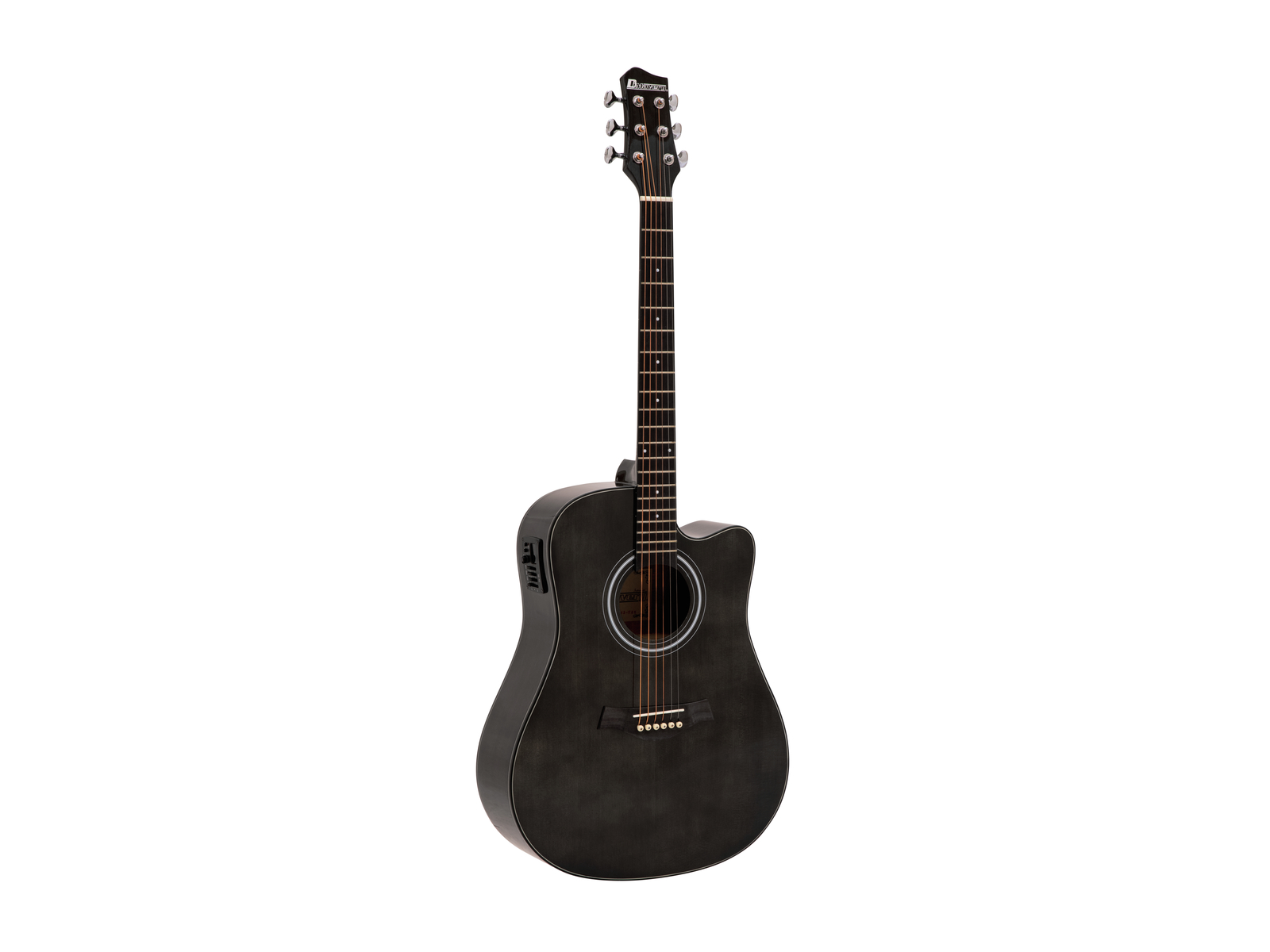 20: Dimavery STW-90 Westerngitarre, vintage black: Technische Daten:Batterie: 1 x 9,0 V E-Block 6F22 Zink-Kohle eingebaut Ausführung: Rechtshänderversion Hals: Mahagoni^ Griffbrett: Palisander 20 Bünde Korpus: 4/4 Dreadnought-Form, Mahagoni lackiert Mensur