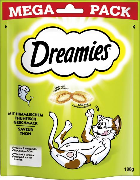 20: Willst du deine Katze mit etwas verwöhnen, von dem sie schon immer geträumt hat? Nichts einfacher als das: Dreamies™,-Snacks sind die köstliche Belohnung für zwischendurch. Die cremige Füllung in der knusprigen Hülle ist genau das Richtige für alle Naschkatzen. Die praktische, wiederverschließbare Verpackung hält die Snacks frisch, um möglichst oft Träume wahr zu machen. Dreamies™, als Mega-Pack mit extra viel Inhalt.