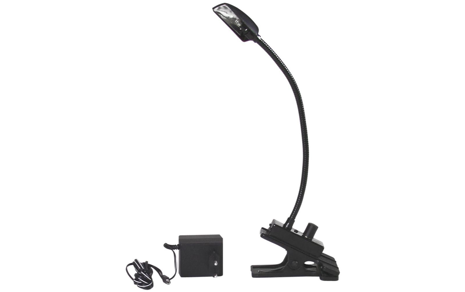Eurolite Flexilight Klemmleuchte: Features:Schwanenhalsleuchte mit Befestigungsclip 12V/5W-Lampe Helligkeitsregler Spannungsversorgung über mitgeliefertes NetzteilTechnische Daten:Spannungsversorgung: 12 V AC, 500 mA Gesamtanschlusswert: 6 W Länge: 385