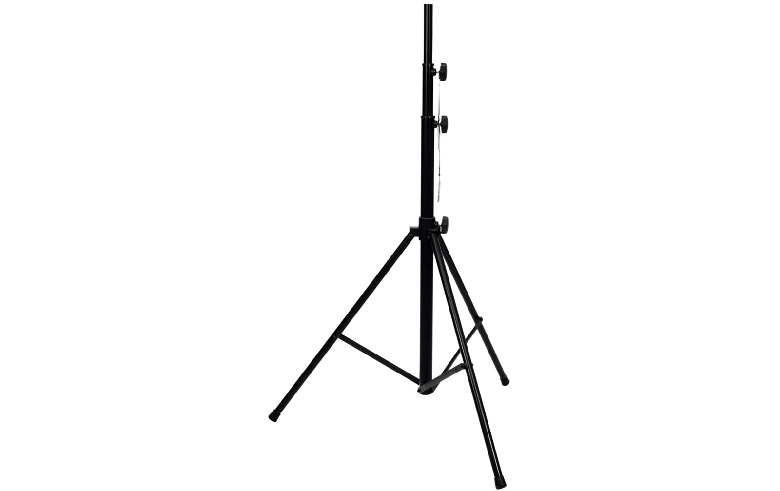 20: Eurolite LS-1 EU Stahlstativ: Features:Standfestes Lichtstativ für den mobilen Einsatz Stabile Stahl-/Magenesiumausführung Einstellbare Höhe 145-315 cm, mit Sicherungsbolzen Zentrisch belastbar: 30 kg Aufnahme: Ø 28 mm Kratzfester, schwarzer Lack Quer
