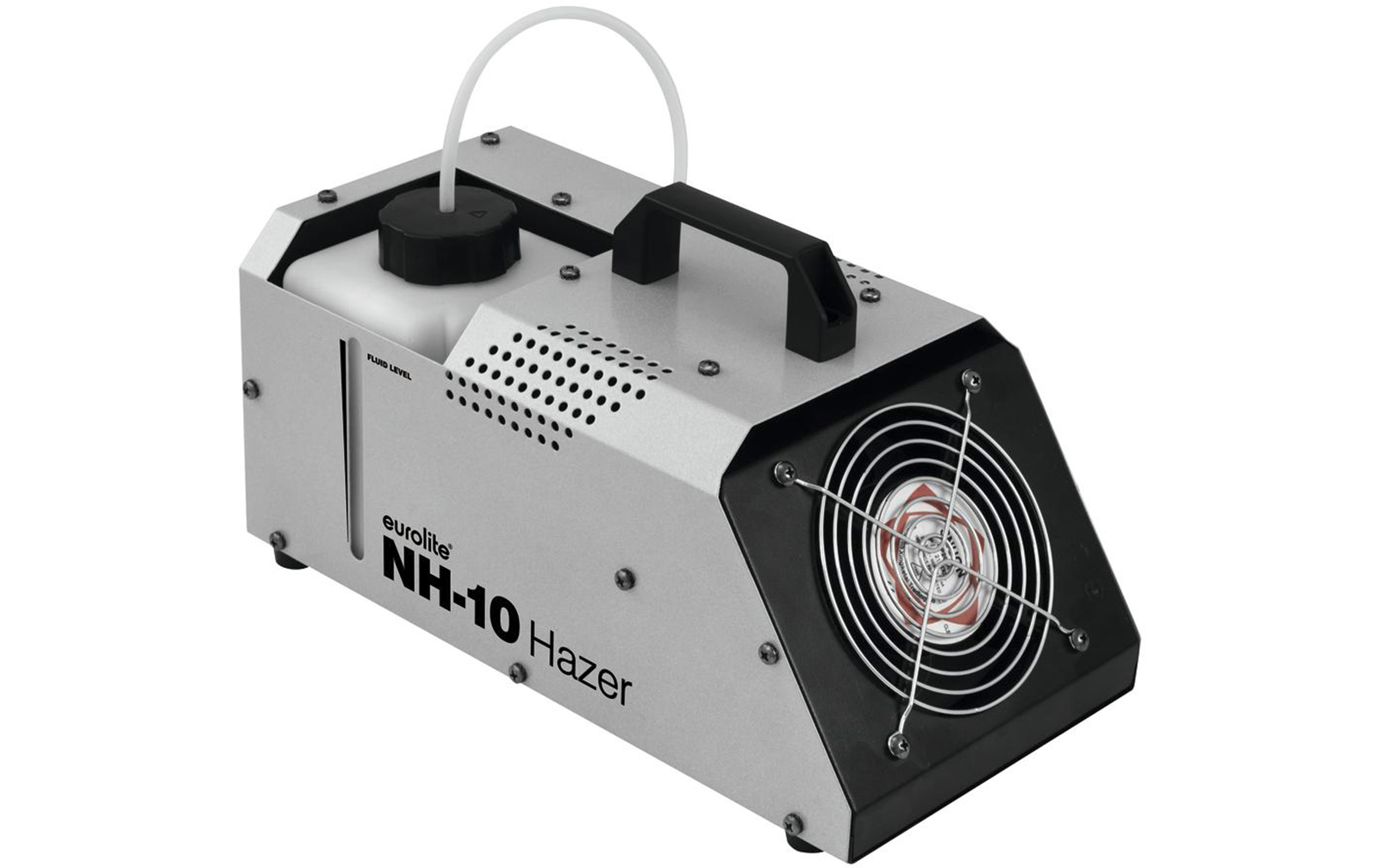Eurolite NH-10 Dunstnebelmaschine: Features:Dunstnebelgerät für Party-Räume An-/Aus-Kabelfernbedienung Ausstoßvolumen regelbar Füllstandanzeige Betrieb mit herkömmlichen Nebelfluid auf Wasserbasis Metallgehäuse mit Tragegriff Standgerät ohne Häng