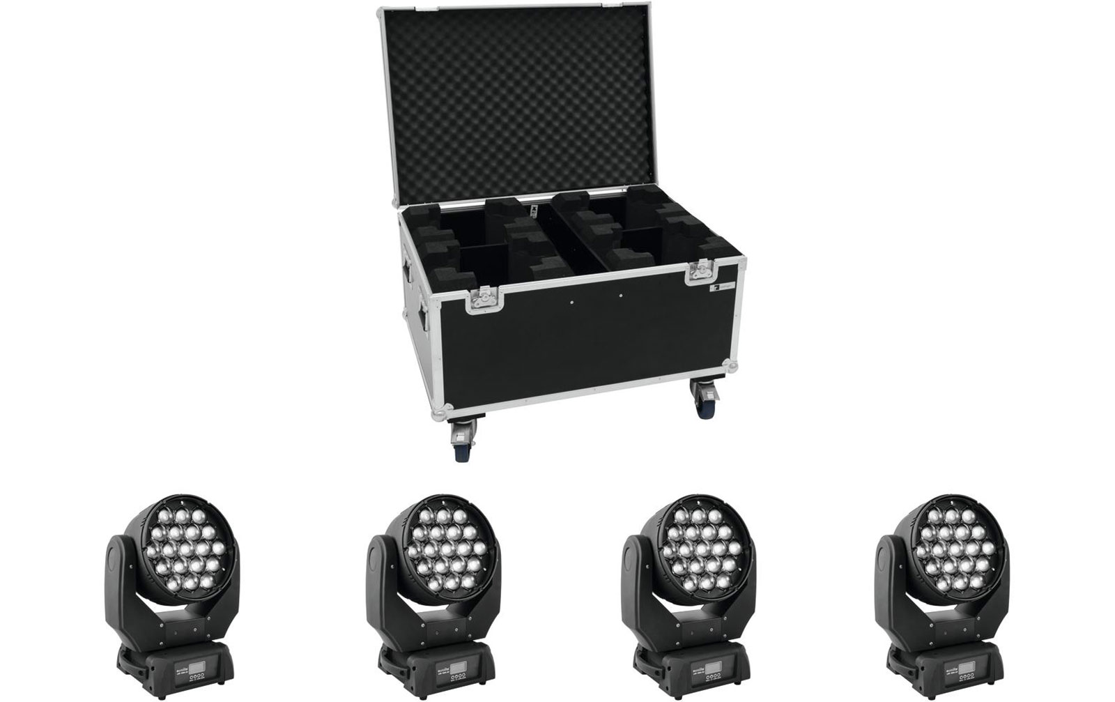 Set bestehend aus: 4x 51785990: EUROLITE LED TMH-X5 Moving-Head Wash Zoom 1x 31005108: ROADINGER Flightcase 4x TMH-X5 mit Rollen 51785990 Eurolite LED TMH-X5 Moving-Head Wash Zoom LED-Moving-Head-Washlight mit 12-W-COB-LEDs Ausgestattet mit 19 x 12-W-COB-