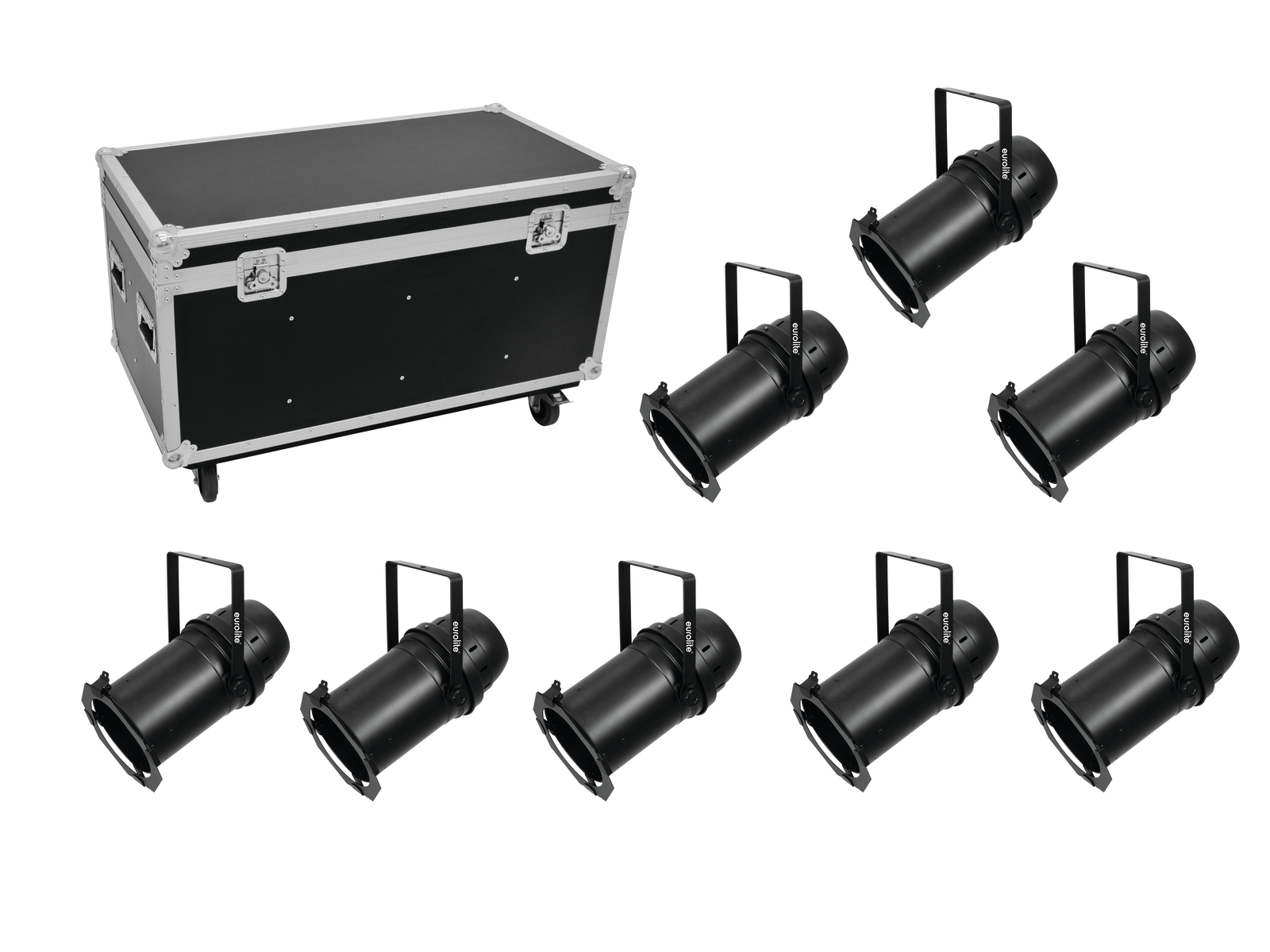 Eurolite Set 8x LED PAR-64 COB 3000K 100W Zoom sw + Case