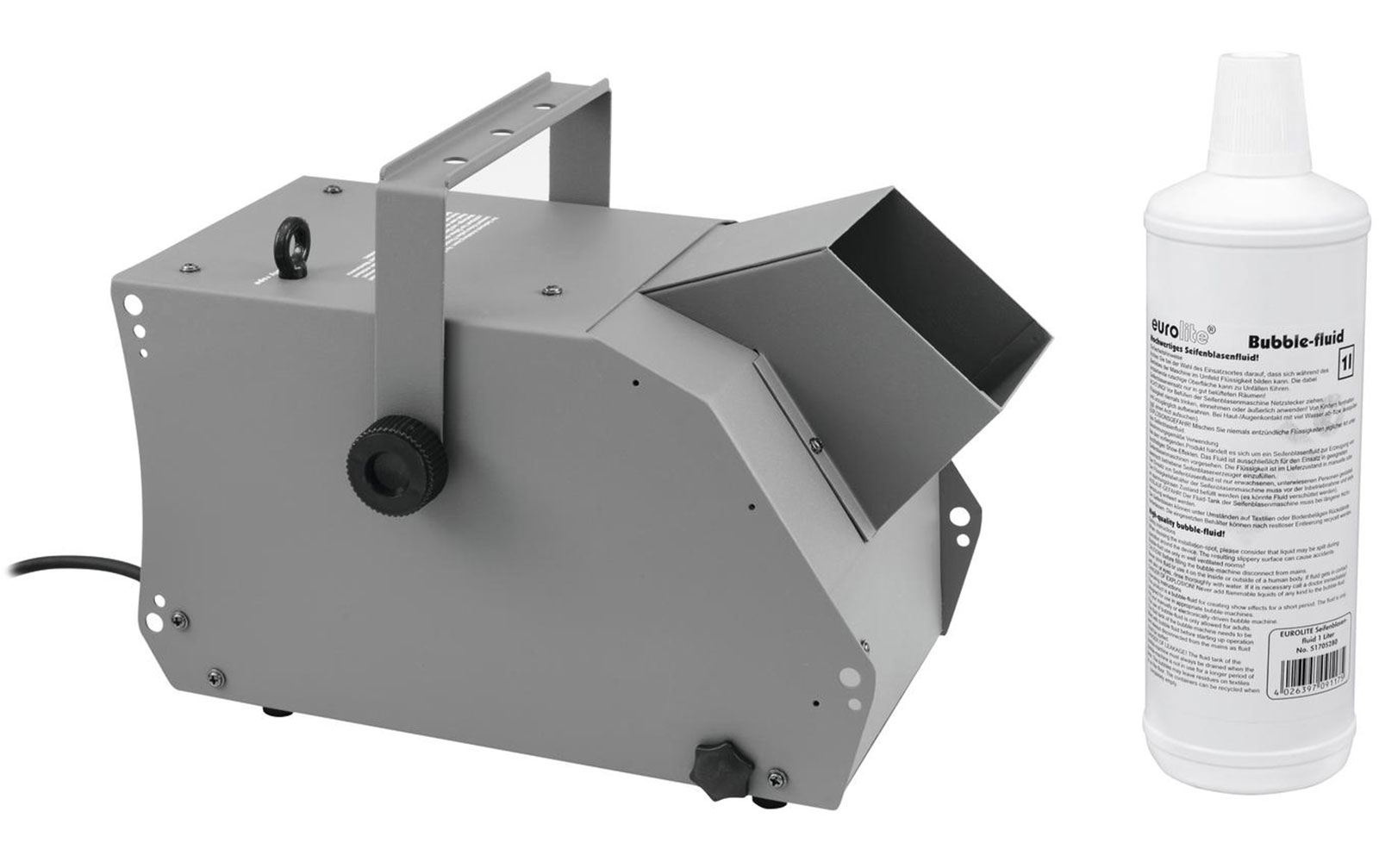 20: Eurolite Set BW-100 Seifenblasenmaschine + Seifenblasenfluid 1l: Set bestehend aus:51705124 EUROLITE BW-100 Seifenblasenmaschine 1x 51705280: EUROLITE Seifenblasenfluid 1l51705124 EUROLITE BW-100 Seifenblasenmaschine Seifenblasenmaschine Ein rotierendes R