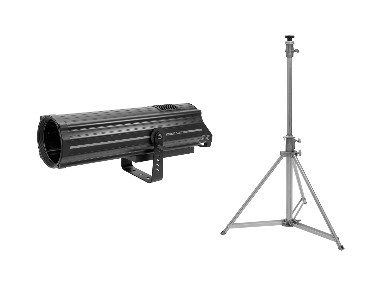 Eurolite Set LED SL-400 DMX + STV-200: Set bestehend aus:1x: EUROLITE LED SL-400 DMX Search Light1x: EUROLITE STV-200 Verfolgerstativ, EdelstahlFeatures:Eurolite LED SL-400 DMX Search Light Verfolger mit 300-W-Warmweiß-LED für mittlere Entfernungen, Zoo