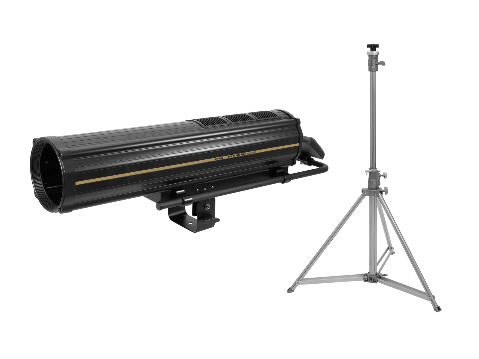 Eurolite Set LED SL-600 DMX + STV-200: Set bestehend aus:1x: EUROLITE LED SL-600 DMX Search Light1x: EUROLITE STV-200 Verfolgerstativ, EdelstahlFeatures:Eurolite LED SL-600 DMX Search Light Verfolger mit 600-W-Kaltweiß-LED für große Entfernungen, Zoom,