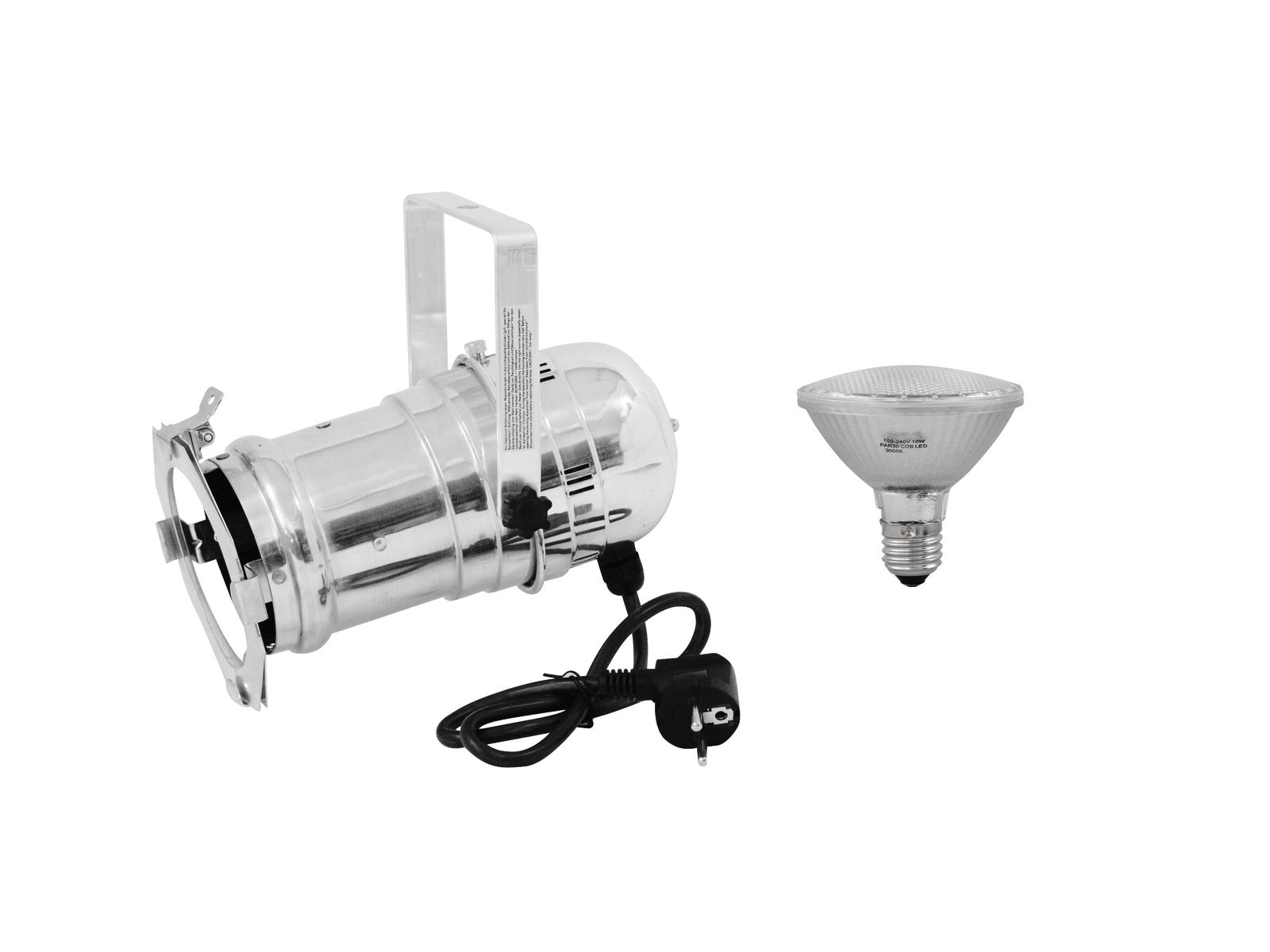 Eurolite Set PAR-30 Spot sil + PAR-30 230V SMD 11W E-27 LED 3000: Features:42103522 Eurolite PAR-30 Spot silber Für Dekoration und kleine BühnenLieferung erfolgt komplett verdrahtet mit E27 Fassung und Farbfilterrahmen Einfache Installation mit Silikonk