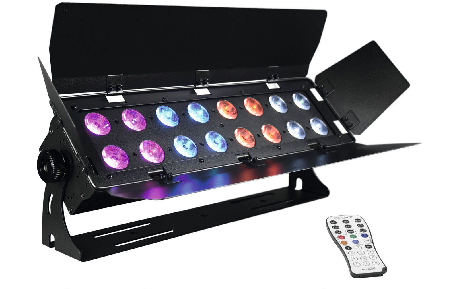 20: Eurolite Stage Panel 16 HCL LED: Features:16 leistungsstarke 12-W-RGBAW+UV-LEDs (6in1) 4 Segmente für dynamische Lauflichteffekte Auto-, Musik-, Master/Slave- und DMX-Modus Integrierte Showprogramme im Auto- und Musikmodus Direkte Farbwahl für 26 Farben