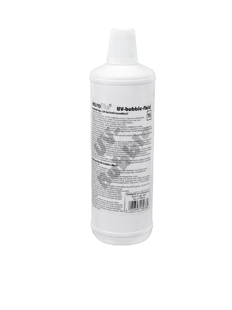 20: Eurolite UV-Seifenblasenfluid 1L blau:SeifenblasenflüssigkeitErzeugt normale Seifenblasen bei StandardbeleuchtungBei UV-Licht beginnen die Seifenblasen bläulich zu leuchtenDer ultimative Hit für Diskotheken, Parties oder Konzerte Licht, Effekte & Video
