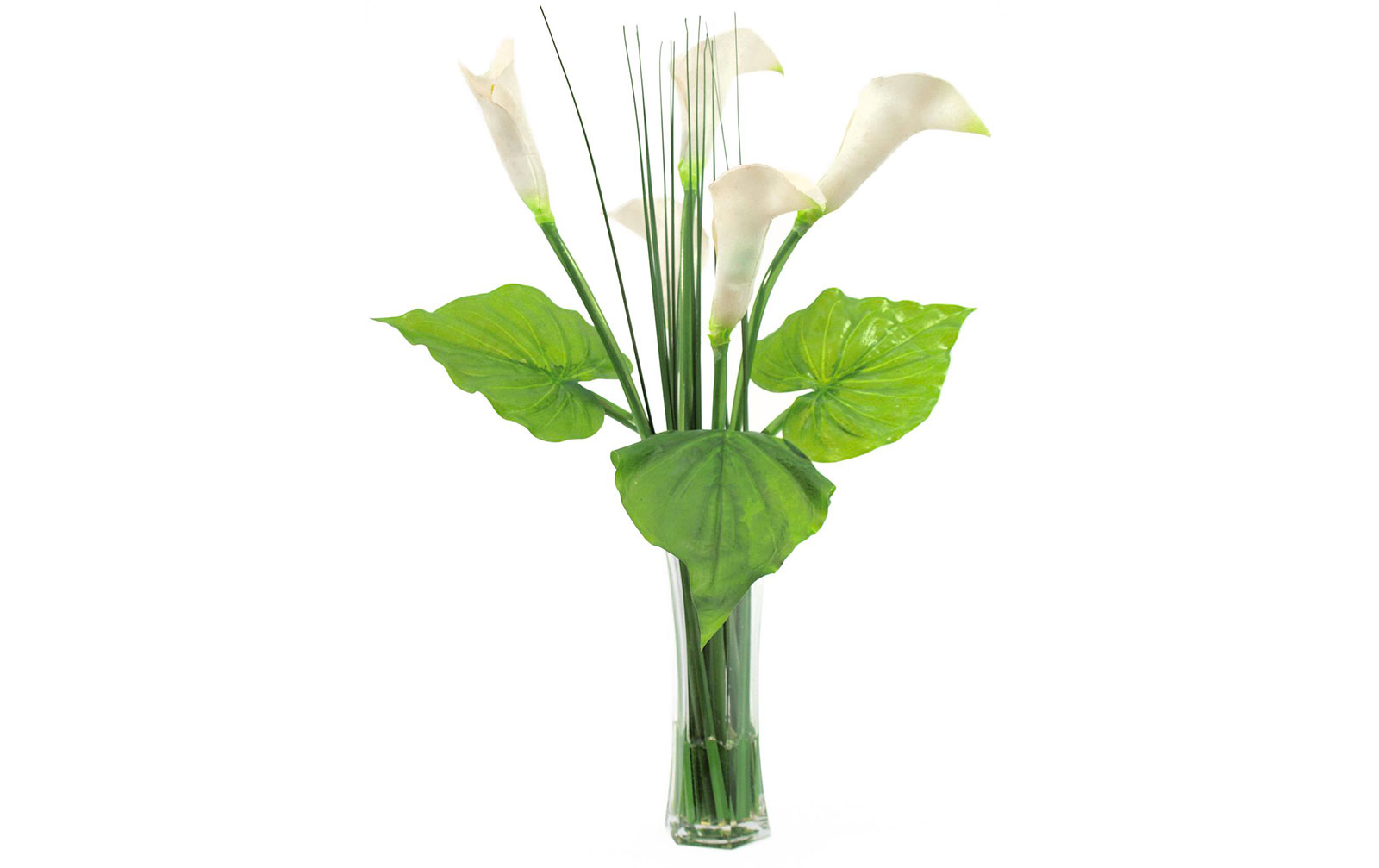 23: Europalms Calla im Glas 3 Blätter 5 Blüten 64cm, Kunstoff