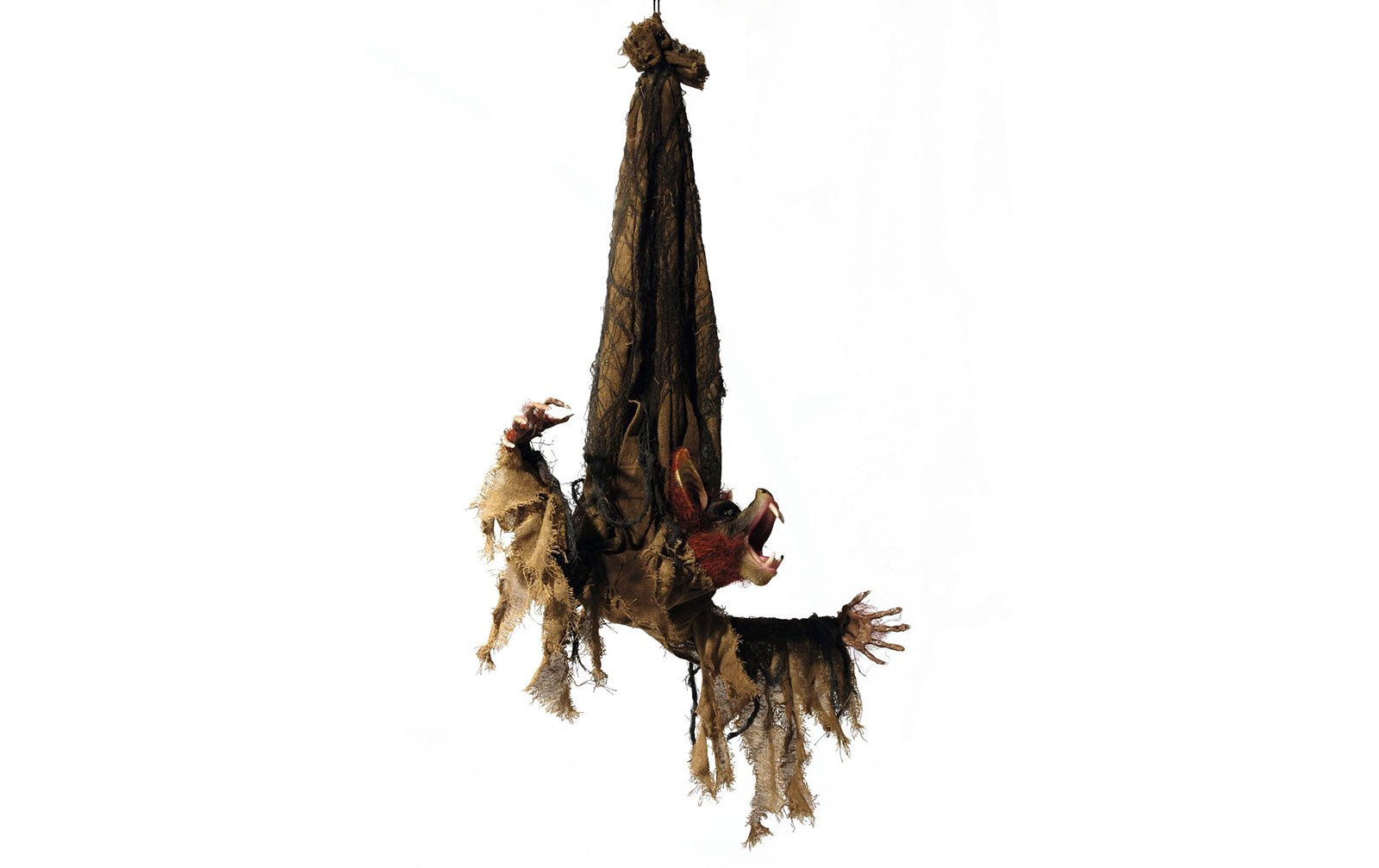 20: Europalms Halloween Figur BAT, animiert: Features:Hängefigur Fledermaus mit Skeletthänden Arme formbar Bewegt die Arme und den Kopf Augen blinken rot Kopf aus Kunststoff, Torso aus Stoff Mit Soundeffekt Betrieb über 3 x AAA Batterien (nicht im Lieferum