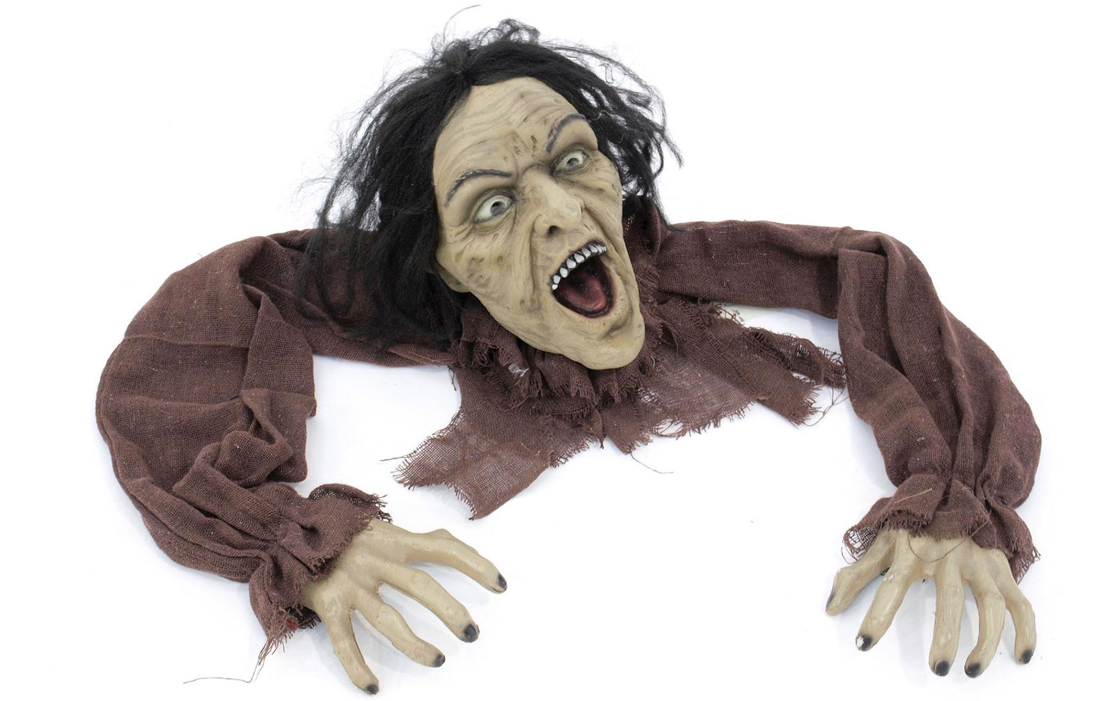 20: Europalms Halloween Figur Crawling 140cm: Wenn die Zombies erst einmal losgelassen...Features: Zombie kriecht aus der Erde Plastische Figur zum Legen Arme formbar Material: Wattiertes Textil, Hartkunststoff, Leinen Breite: 140 cm Tiefe: 55 cm Höhe: 24 cm