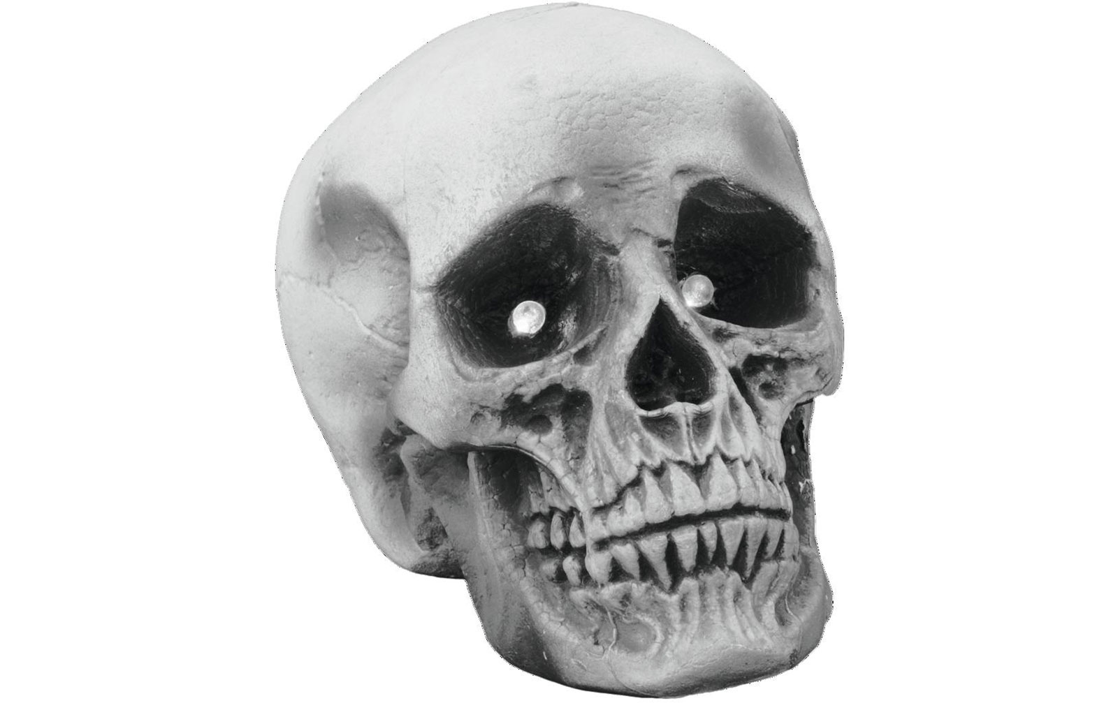 20: Europalms Halloween Schädel LED: Features:Schädel-Dekoration zum Aufstellen Rot pulsirender LED-Leuchteffekt in den AugenTechnische Daten:Material: Styropor Betrieb über 3 x 1,5 LR44-Batterien (im Lieferumfang enthalten) Versandgewicht: 0,07 kg Zubehö