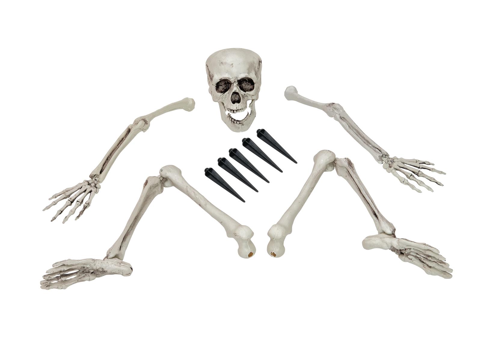 20: Europalms Halloween Skelett, mehrteilig: Features: Bestehend aus: SchĂ€del, 2 Arm- und Beinteilen ErdspieĂe zum Verankern im Boden GröĂe SchĂ€del: 19 cm LĂ€nge Arme: 45 cm LĂ€nge Beine: 66 cmZubehör > PartyartikelHalloween Helloween Haloween Hallowen