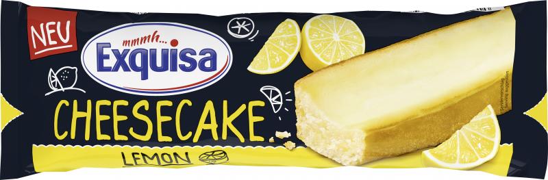Saftig gebackener Käsekuchen mit Exquisa Frischkäse trifft auf fuchtig-frische Zitrone: entdecke den ersten Käsekuchen Snack aus dem Kühlregal jetzt in der Geschmacksrichtung Lemon-Cheesecake!