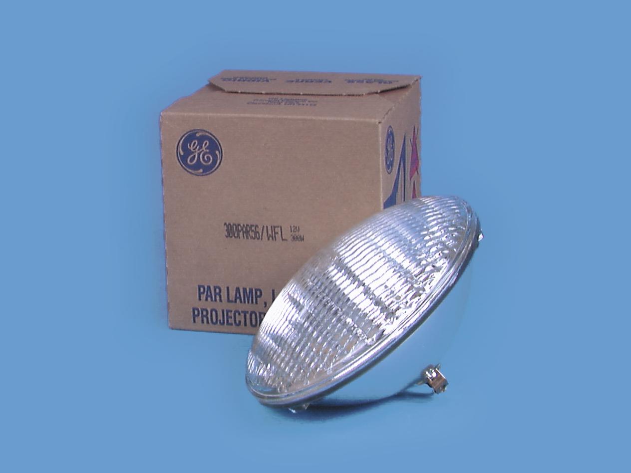 GE PAR-56 12V/300W WFL (Schwimmbadlampe):FarbfolienschonendGleichmäßige Wärmeabgabe durch FrontglasFür professionelle Effektbeleuchtung in Diskotheken und BühnenFarbtemperatur ca. 3000 K Spannung:12 V Nennleistung:300 W Sockel:G-53 STC Lebensdauer:10