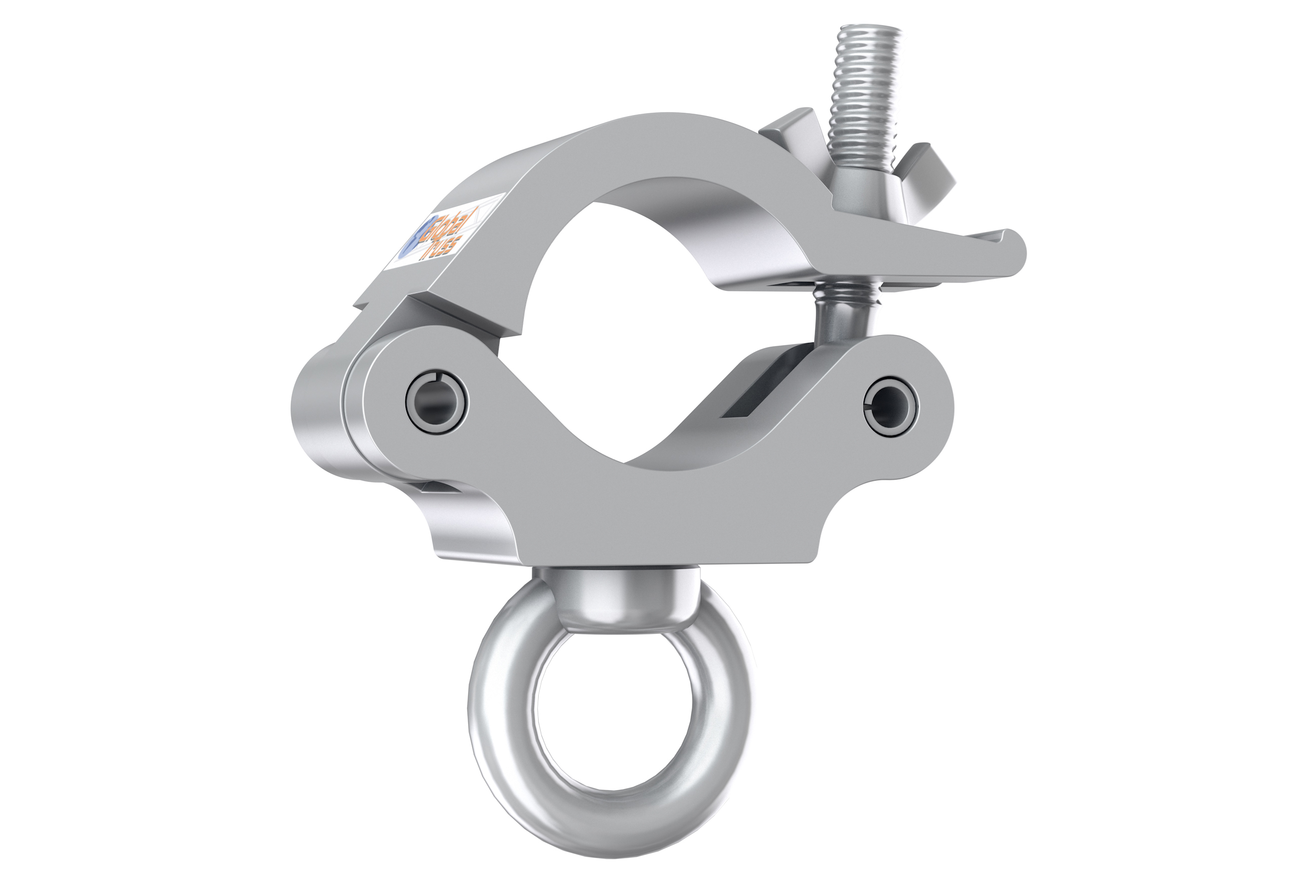 20: Global Truss Halfcoupler, Trussaufnehmer mit Öse 48-51mm:Kompatibel: 48-51mm Breite: 50mm Zugbelastung: 200kg TÜV ZertifiziertBühne & Show > Traversen > Zubehör Truss
