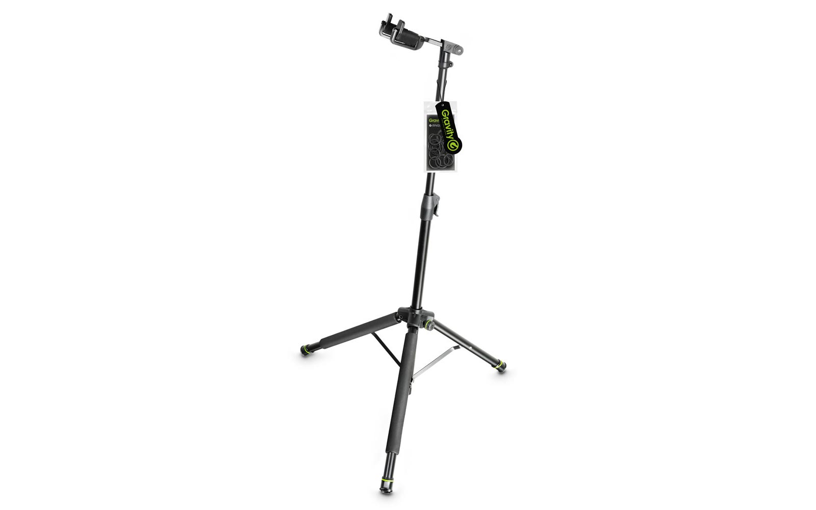 Gravity GS 01 NHB Gitarrenständer: Der GS 01 NHB ist ein stabiler und dabei eleganter Gitarrenständer für akustische, elektrische und Bassgitarren. Er lässt sich in der Höhe bis 108 cm verstellen und ist zusammenklappbar. Der clevere `Neck Hug` Instr