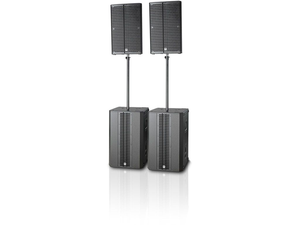 20: HK Audio Linear 5 Power Pack: Das Pack besteht aus zwei aktiven Subs L Sub 2000 mit 2 x 12`-Chassis sowie zwei aktiven Tops L5 112 XA. Distanzstangen und Schutzhüllen inklusive. Ideal für bis zu 350 Zuschauer. Bestehend aus:2 x L5 112 XA 2 x L Sub 2000