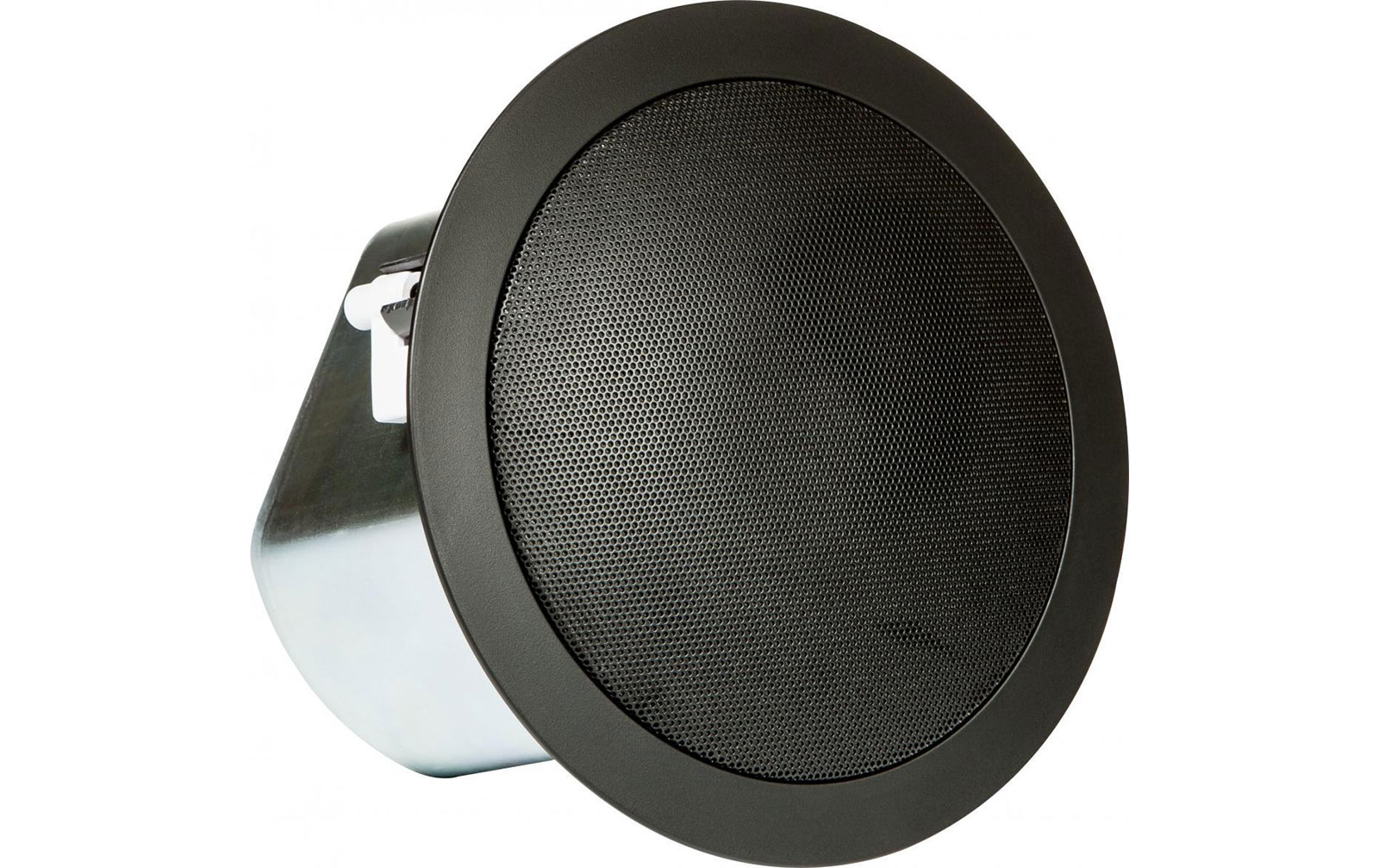 20: JBL Control 12C/T BK: Die JBL Control 12C/T ist ein Deckenlautsprecher mit einem weiten Frequenzgang. Die Bestückung besteht aus einem 76 mm Breitband Lautsprecher mit Bass-Reflex Gehäuse. Typische Anwendungen sind Restaurants, Cafés, Hotels, Ladengesc