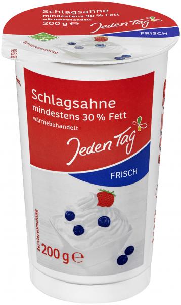 Frische Schlagsahne, mindestens 30% Fett, wärmebehandelt.
