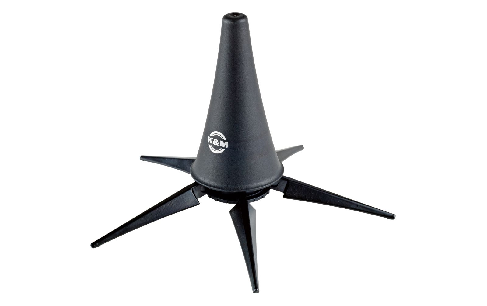 20: K&M 15228 Klarinettenständer - schwarz: Äußerst klein und kompakt präsentiert sich dieser `In-Bell` Klarinettenständer. Für hervorragende Standsicherheit sorgen 5 stabile Zink-Druckguss Füße. Dank des patentierten und leicht zu bedienenden Einsch