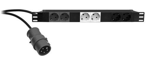 K&M 28664 19`-Power Box, schwarz: Stabiles Alu-Gehäuse 1 HE, nur für Kraftstromanschluss 16 A 380 V~. 5-poliger CEE-Stecker und 2 m Anschlusskabel. 6 Steckdosen 230 V~ auf der Frontseite, farblich gekennzeichnet. Mit CE-Kennzeichnung. Kabel > Stromkabel