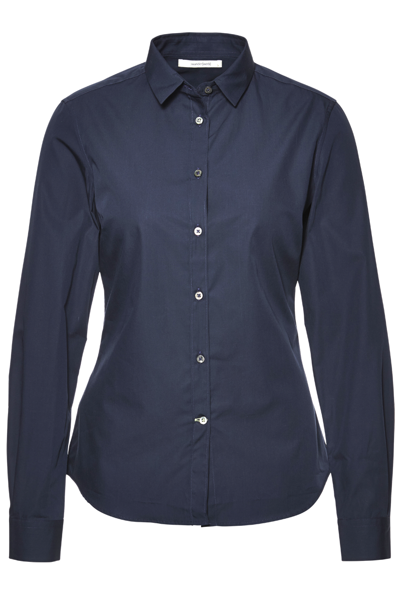 ··· Bluse aus hochwertiger Biobaumwolle. Schmal und tailliert geschnitten. Geschlitzte Manschetten, hochwertige Perlmuttknöpfe.