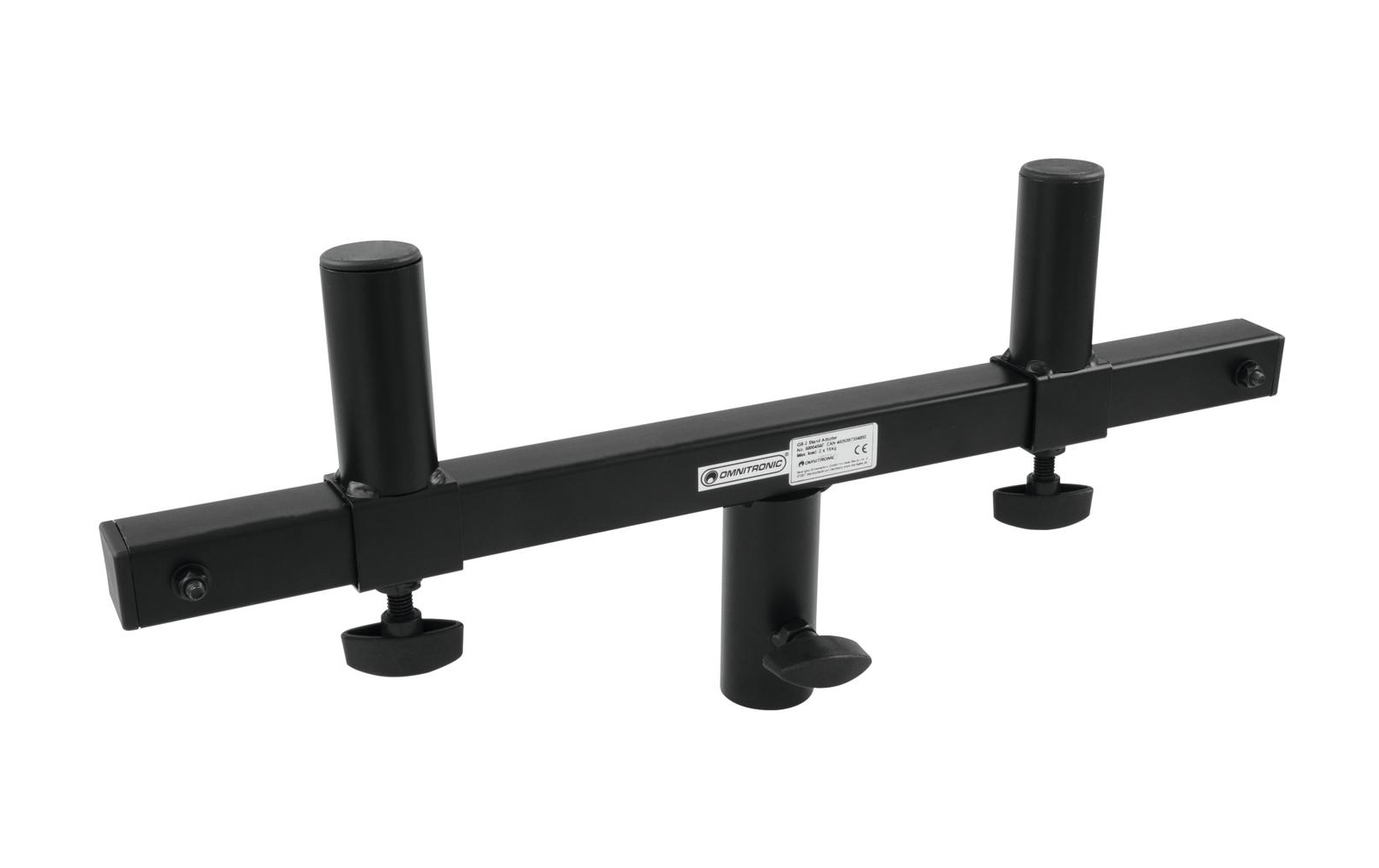 20: Omnitronic GB-2 Stativgabel: Features:Stativadapter für 2 Lautsprecherboxen Abstand variabel verstellbar (310-450 mm) Passend für Stative mit Standarddurchmesser (Ø 35 mm) Überaus stabile Ausführung Schwarz lackierte Stahlausführung Technische Daten
