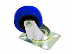 ··· Features: Gehäuse aus Stahlblech, verzinkt chromatiert Radkörper Polyamid schwarz Lauffläche Elastikreifen blau mit Rollenlager und Plattenbefestigung