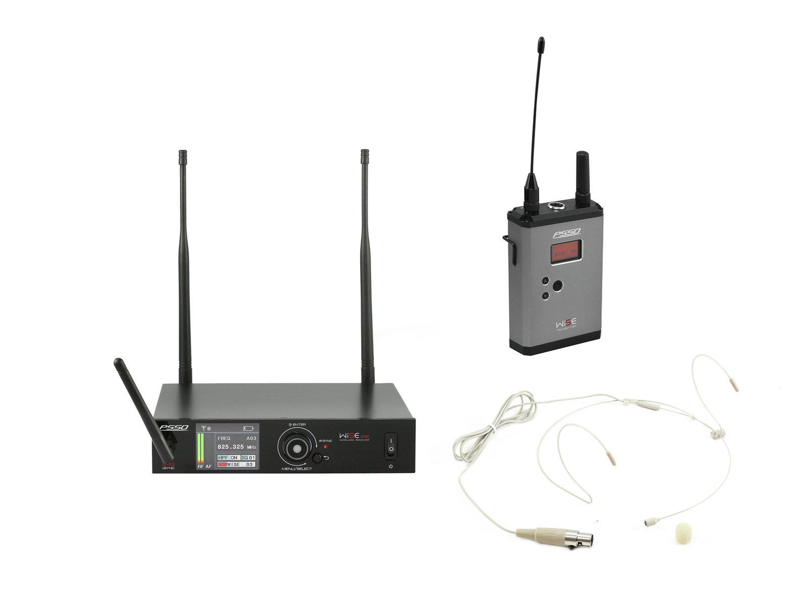 PSSO Set WISE ONE + BP + Headset 823-832/863-865MHz: Set bestehend aus:1x 13063400: PSSO WISE ONE 1-Kanal True Diversity Empfänger 823-832/863-865MHz1x 13063407: PSSO WISE Taschensender 823-832/863-865MHz1x 13063408: PSSO WISE Kopfbügelmikrofon für Tas