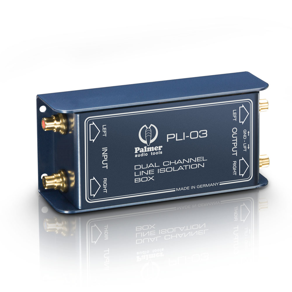 20: Palmer PLI03 Line Isolation Box 2-Kanal: Zweikanaliger Trennübertrager (Line Isolator). Durch Cinch Ein- und Ausgänge speziell für den Anschluss von Notebooks, Soundkarten, Hifi – Anlagen u.Ä. konzipiert.Mit der PLI 03 beseitigen Sie Erdschleifen und
