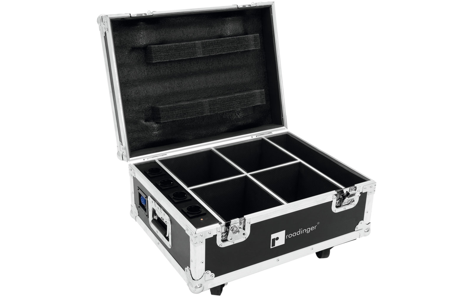 20: Roadinger Flightcase 4x AKKU UP-4 QuickDMX mit Ladefunktion: Features:Passend für vier Eurolite AKKU UP-4 QCL Spot QuickDMX (Nr. 41700540), Eurolite AKKU UP-1 Glow QCL Flex Spot QuickDMX (Nr. 41700506) Mit Ladegerät für bis zu vier Scheinwerfer Innenra
