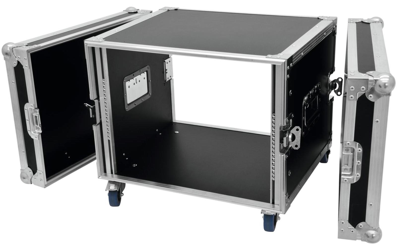 Roadinger Rack Profi 8HE 45cm mit Rollen: Features:Rackschienen mit Montagemöglichkeit für 483-mm-Geräte (19`), wie leichte Endstufen, Lichtendstufen, Zusatzgeräte 2 abnehmbare Deckel (Double-Door-Version) Hochwertige Verarbeitung mit 9 mm mehrschicht