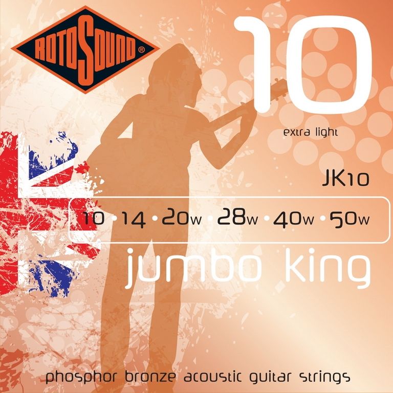20: Rotosound A-Git. Saiten JK10 Jumbo King 10er Satz: Die meistverkaufte Akustik-Saite. Features:warmer Ton, Klarheit und Sustain Phosphor Bronze 10, 14, 20w, 28w, 40w, 50wInstrumente > Gitarren & Bässe > Saiten > für Westerngitarre > .010 Saitensätze