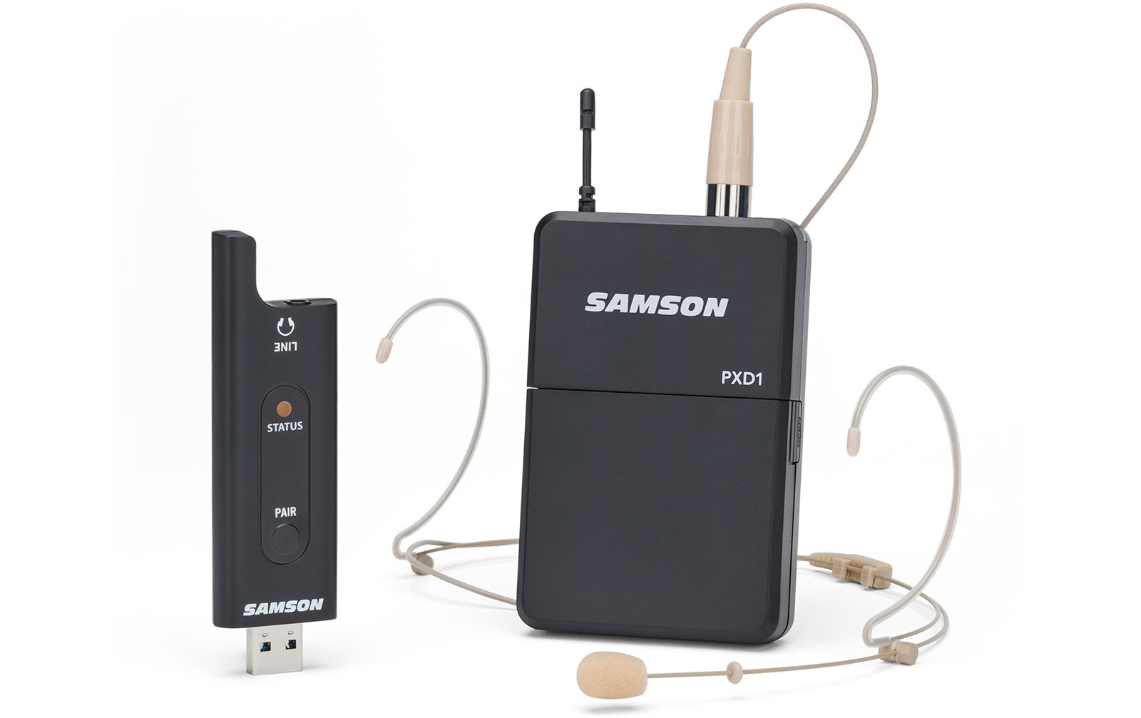 20: Samson Stage XPD2 Headset Wireless System: Das Samson XPD2 Headset-System ermöglicht es Ihnen, über seinen einzigartig gestalteten USB-Stick-Empfänger ein drahtloses Mikrofon für eine Vielzahl von Klanganwendungen einzusetzen. Das XPD2 Headset bietet